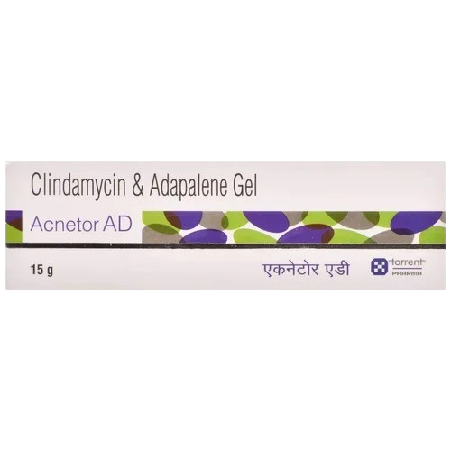 Acnetor AD Gel is a combination of two medicines that effectively treats acne. It minimizes oil production and helps to reduce inflammation. It also kills acne-causing microorganisms and prevents infection. This helps to prevent pimples, blackheads, and whiteheads on the skin.Acnetor AD Gel is only meant for external use and should be used as advised by your doctor. You should normally wash and dry the affected area before applying a thin layer of the medicine. It should not be applied to broken or damaged skin. Avoid any contact with your eyes, nose, or mouth. Rinse it off with water if you accidentally get it in these areas. It may take several weeks for your symptoms to improve, but you should keep using this medicine regularly. Do not stop using it as soon as your acne starts to get better. Ask your doctor when you should stop treatment.Side effects like minor itching, burning, or redness of the skin and oily skin may be seen in some people. These are usually temporary and resolve on their own. Consult your doctor if they bother you or do not go away. Inform your doctor if you have any problems with your bowels (intestines), or if you are using any other medicines to treat skin conditions. Consult your doctor about using this medicine if you are pregnant or breastfeeding.