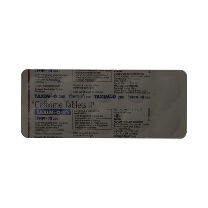 Taxim-O 200 Tablet is an antibiotic belonging that is used to treat a variety of bacterial infections. It is effective in infections of the respiratory tract (eg. pneumonia), urinary tract, ear, nasal sinus, throat, and some sexually transmitted diseases.