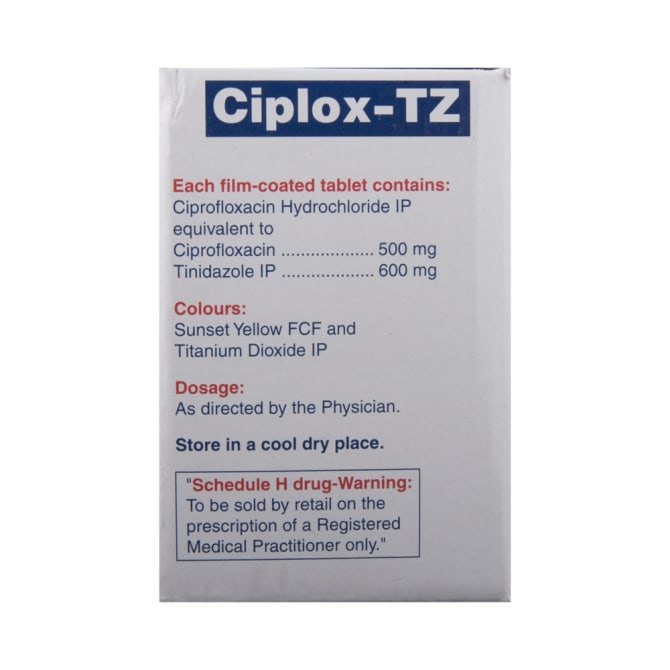 Ciplox TZ Tablet is a combination medicine that is used to treat gynecological infections, teeth and urine infections, lung infections, and abdominal infections such as acute diarrhea or dysentery. It acts against the infection-causing microorganisms to manage the infections.