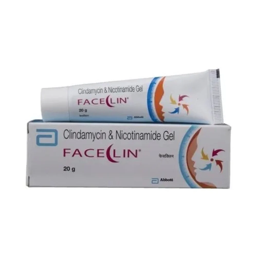 Faceclin Gel is a combination medicine that is used to treats acne. It minimizes excessive oil production, thus reduces inflammation. It also prevents the growth of the microorganisms that cause acne. This also helps to prevent pimples, blackheads, and whiteheads on the skin.Faceclin Gel is only meant for external use and should be used as advised by your doctor. A thin layer of the medicine should be applied only to the affected areas of the skin with clean and dry hands. Wash your hands before and after applying the medicine. If it gets into your eyes, nose, mouth, or vagina rinse with water. It may take several days to weeks for your symptoms to improve, but you should keep using this medicine regularly. The course of the treatment should be completed to ensure better efficacy of the medicine. If your condition does not improve or gets worse, you should talk to your doctor.This is usually a safe medicine, however, it may cause dryness, peeling, redness, and burning sensation at the application site. These side effects are usually mild and self-limiting. Most of these side effects can be prevented by using a skin moisturizer and drinking plenty of water. Serious side effects are rare. You must consult the doctor if you experience any allergic reaction (rashes, itching, swelling, shortness of breath, etc.).Before using this medicine, it is important to tell your doctor if you are taking or have recently taken any other medicines for the same disease or other diseases. Pregnant and breastfeeding women should use this medicine with proper consultation and caution. If you are a known allergic to the medicine, you must refrain from using this medicine and consult your doctor. During the course of the treatment, do not touch, prick or scratch the infected skin areas as this may worsen or spread the acne. Avoid unnecessary sun exposure and use a sunscreen before stepping out in the sun. It is also advised, not to receive any cosmetic procedures without asking your doctor.