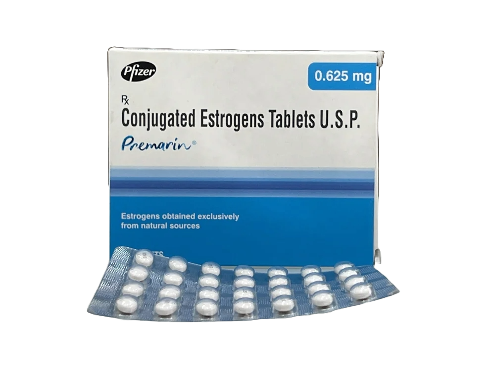 Premarin Tablet is a female sex hormone (estrogen). It is a part of female hormone replacement therapy which helps in treating estrogen deficiency symptoms like hot flushes (red and warm face) and vaginal dryness.Premarin Tablet is also used to prevent osteoporosis (thinning and weakening of bone) in postmenopausal women, who are at high risk of fractures and can not take other preventive medicines for osteoporosis.  It can be taken with or without food, but remember to take it at a fixed time each day for better efficacy. The dose and duration will be decided by your doctor so that you get the right amount to control your symptoms. The treatment should not be stopped abruptly without consulting your doctor as this may affect the potency of this medicine.The most common side effects of this HRT are headaches, breast pain, irregular vaginal bleeding or spotting, abdominal cramps or bloating, nausea, vomiting, and hair loss. If any of these side effects or any other symptoms which you think are because of this medicine persist for a longer duration, please inform your doctor. Before taking this medicine, it is important to tell your doctor if you are taking or have recently taken any other medicines for the same disease or other diseases. Before you initiate with this HRT, you must consult the doctor if you have a history of unexplained vaginal bleeding or if you have ever had a blood clot in your legs or your lungs. If you are pregnant or breastfeeding, you should tell your doctor before taking this medicine. Your doctor may suggest you some diagnostic or laboratory tests to know the effects and side effects of this medicine on your body.