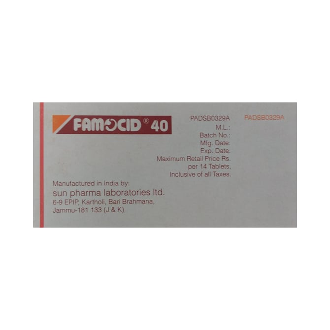 Famocid Tablet is also commonly prescribed to prevent stomach ulcers and heartburn caused due to the use of painkillers. It must be swallowed whole with water before or after a meal. The medicine must be taken in the dose and duration advised by the doctor. This medicine should relieve indigestion and heartburn within a few hours. If the symptoms persist or get worse even after 14 days of treatment, you should consult your doctor immediately. It is not recommended to take this medicine in severe stomach disease. You can help the medicine work better by eating smaller meals more often and avoiding spicy or oily foods.