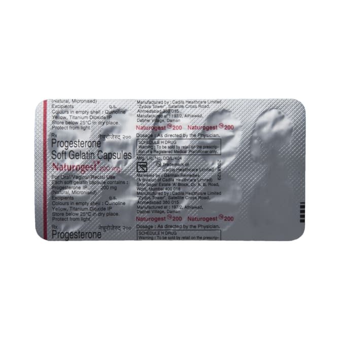 Naturogest 200mg Soft Gelatin Capsule is a natural female sex hormone, progesterone. It is used to treat menstrual and pregnancy-related issues that are caused due to hormonal imbalance. Naturogest 200mg Soft Gelatin Capsule is also prescribed along with estrogen as a part of hormonal replacement therapy for preventing endometrial hyperplasia (thickening of the lining of the uterus). It should be taken with food. It should be taken at the same time each day to get the most benefit. You should continue taking it for as long as your doctor has told you to, even if you feel well.