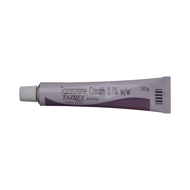 Tazret is a medicine used in the treatment of psoriasis and acne. It works by stopping the overgrowth and thickening of skin cells. Use it only on the affected areas and do not apply on the healthy skin.